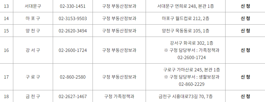 필요시 각 자치구(서대문구, 마포구, 양천구, 강서구, 구로구, 금천구)로 문의 가능 하며 온라인 신청 또한 가능하다.