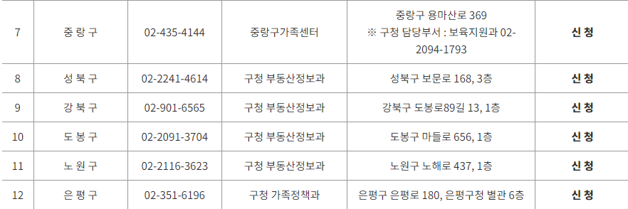 필요시 각 자치구(중랑구, 성북구, 강북구, 도봉구)로 문의 가능 하며 온라인 신청 또한 가능하다.