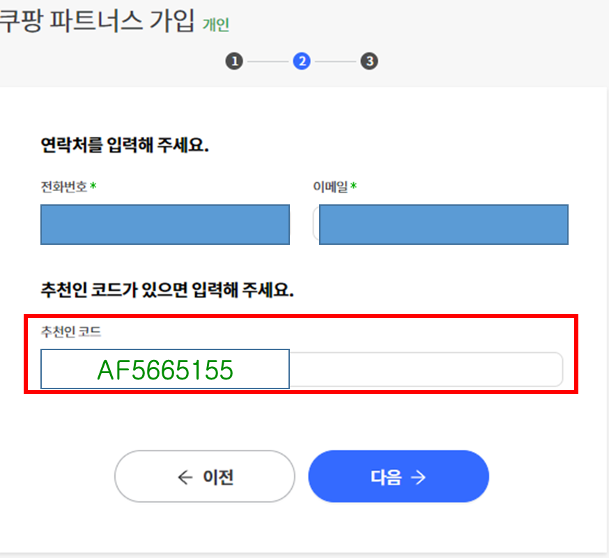 ** 추천인 코드를 입력해야 가입 한달간 1%의 추가 광고료를 더 지급 받음