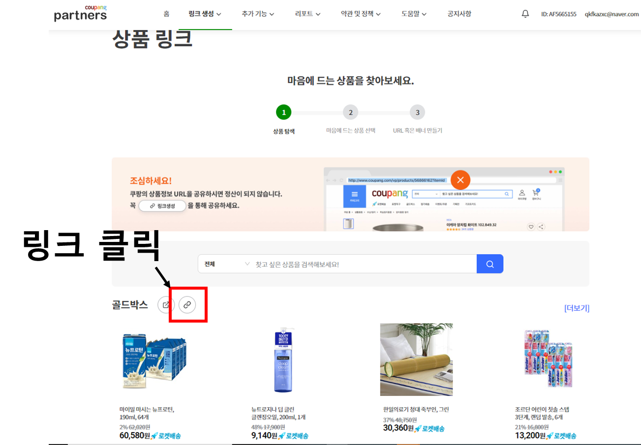 6. 링크 생성 - 광고 하기 위한 상품 링크를 추출 한다.