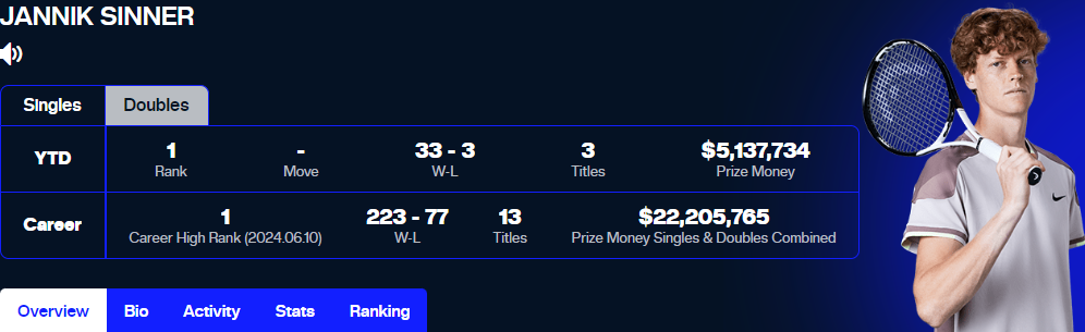 2024 ATP 세계 남자 테니스 랭킹(순위) top 10