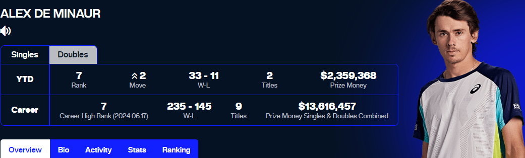ATP, 2024 세계 남자 테니스 랭킹, 순위