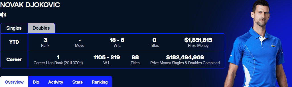 오랫동안 페더러, 나달, 조코비치가 장악하였던 ATP 랭킹에서 2024년 지금은 조코비지만이 살아남았다. 과연 그의 명성은 얼마나 오랫동안 유지될 수 있을까? 그리고 떠오르는 신예 시너, 알카라즈, 메드베데프, 즈베레프 등 그들 또한 페더러, 나달, 조코비치와 같이 오래도록 테니스인들의 사랑을 받았으면 좋겠다.